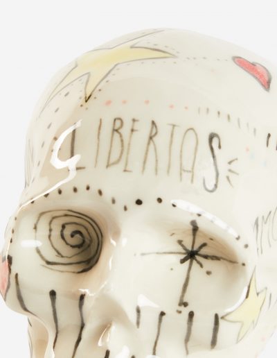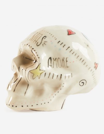 - Escultura cerámica en forma de calavera y decorada de forma original.