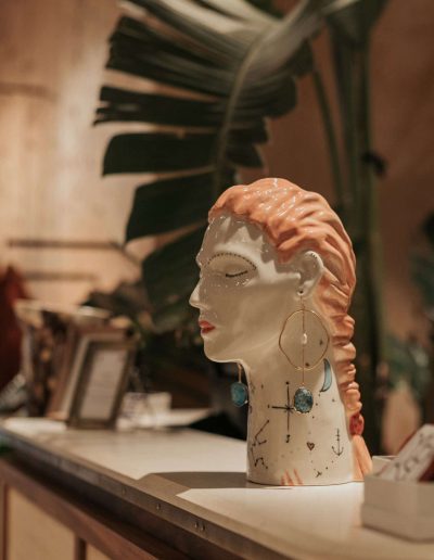 Escultura cerámica de una delicada cara de mujer dormida, que rinde homenaje a la diosa griega de la luna. Esta pieza, llamada Selene, representa un mundo de calma y ensoñación, con símbolos que llevan mensajes profundos sobre el amor, la luz y las constelaciones. Cada detalle invita a conectar con la serenidad del universo, evocando el misterio y la paz que la luna inspira, y sugiriendo realidades ocultas en el descanso.