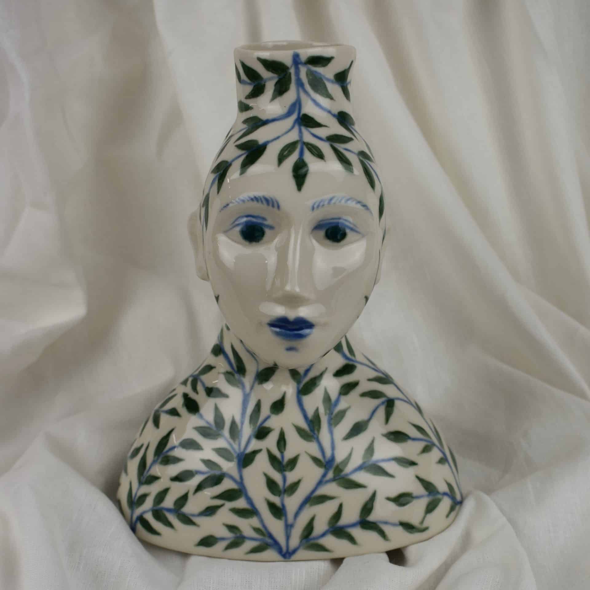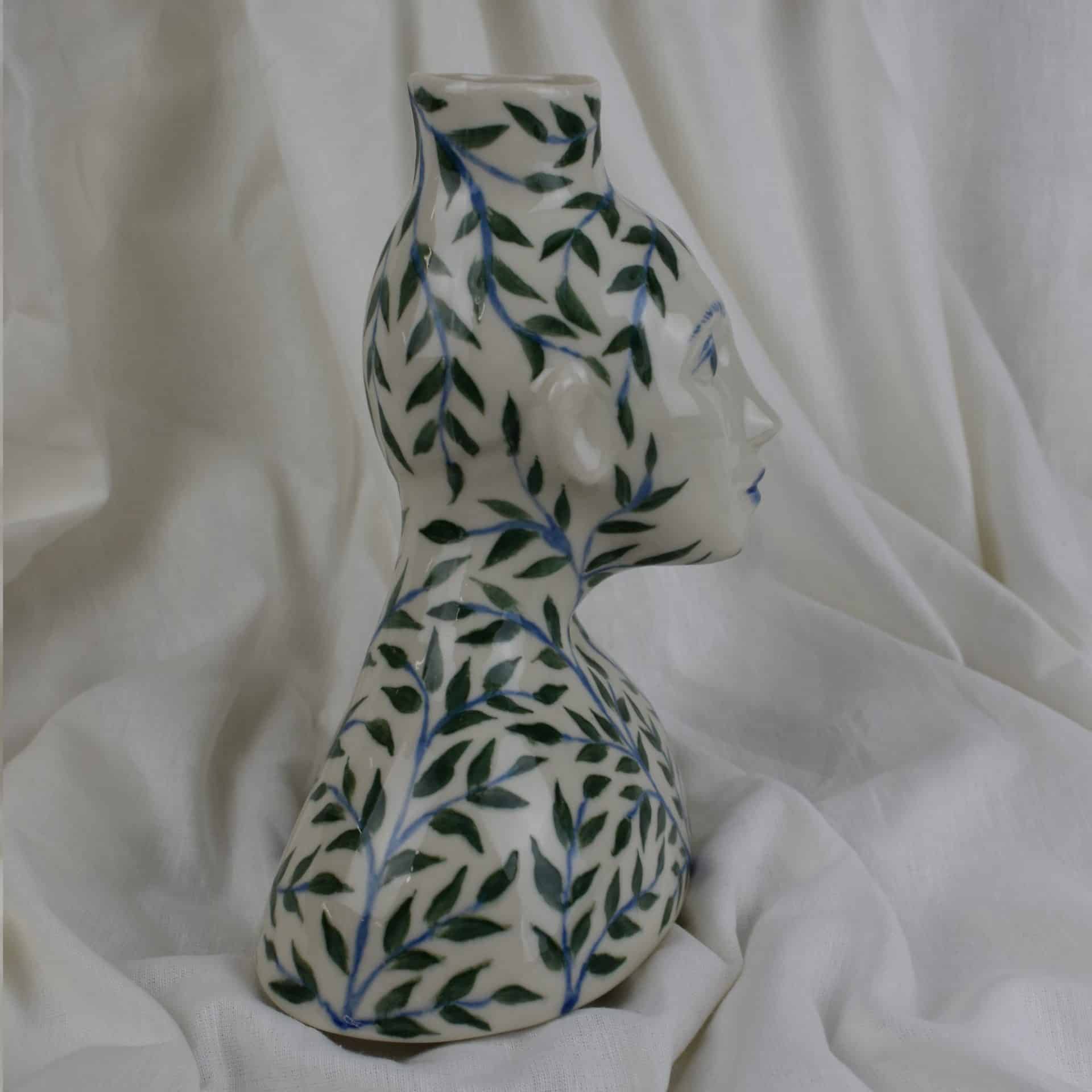 Sculpture in the shape of a female, made of porcelain, created by Andrea Suárez and hand-painted by Brianda Fitz-James Stuart.