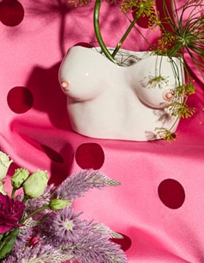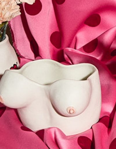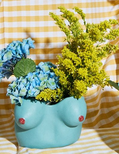 Escultura cerámica en forma de torso femenino en color azul que rinde homenaje a Afrodita, la diosa griega del amor y la belleza. Esta pieza destaca la sensualidad y la perfección de los pechos, celebrando la belleza femenina en su forma más pura y divina. "Afrodita" invita al espectador a admirar la delicadeza y la armonía del cuerpo femenino, fusionando la mitología clásica con una visión contemporánea y elegante.