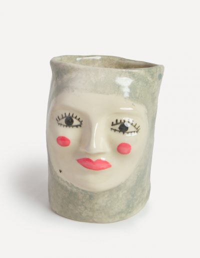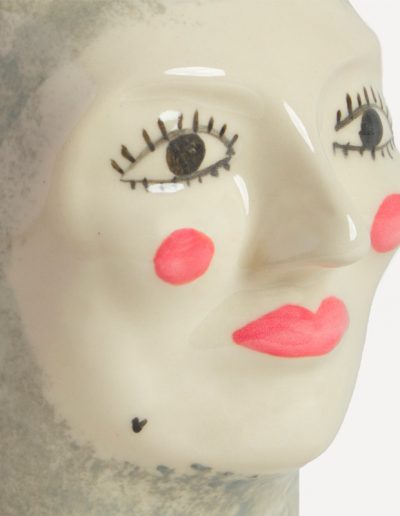 Handcrafted ceramic sculpture in the shape of a vase with an embedded face, made of high-quality porcelain.