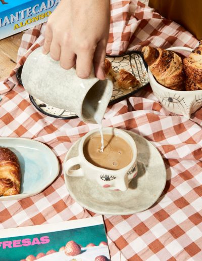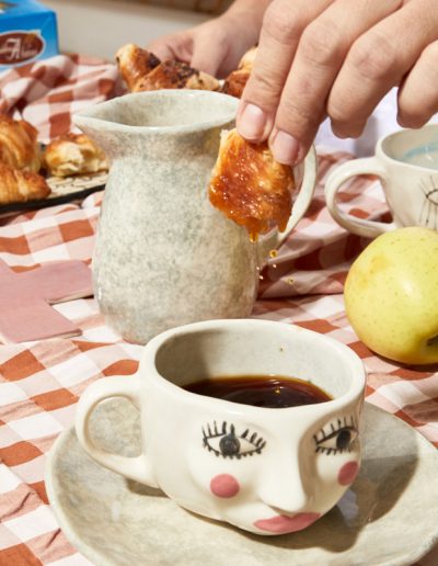 Coffee set consisting of 6 cups and 6 saucers and a milk jar handcrafted in porcelain