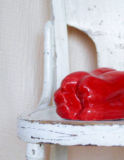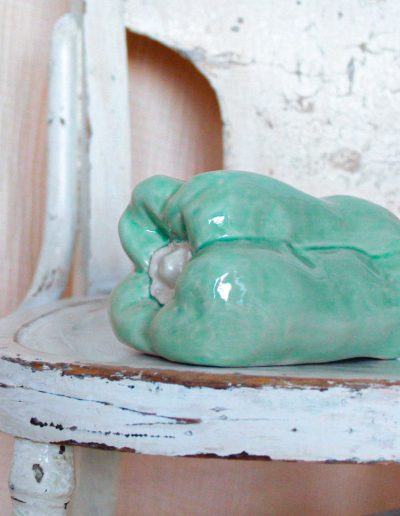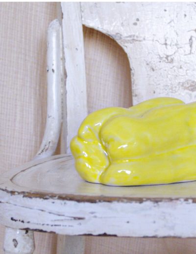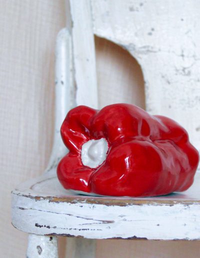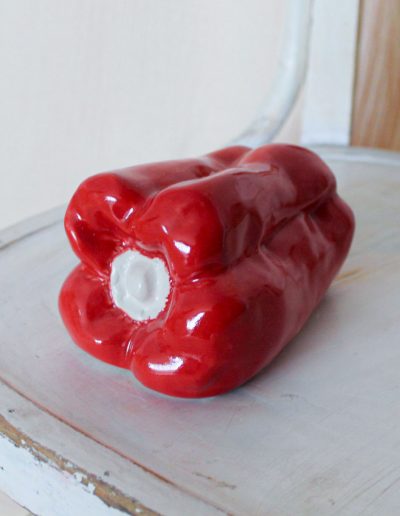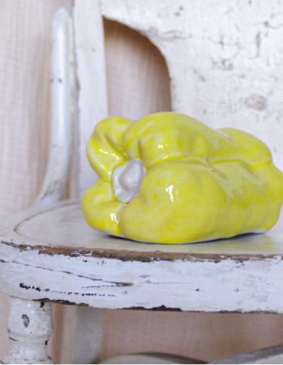 Handcrafted ceramic sculpture in the shape of a pepper, made of high-quality stoneware. It is available in yellow, blue, red, pink, and green.