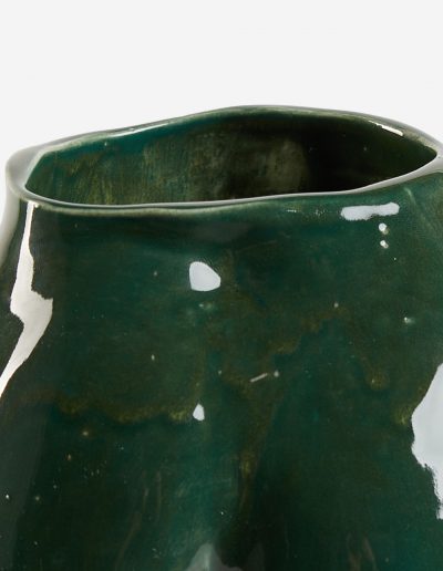 It is a sculpture made by hand in stoneware. It is decorated with green enamel and coated with a transparent gloss enamel.