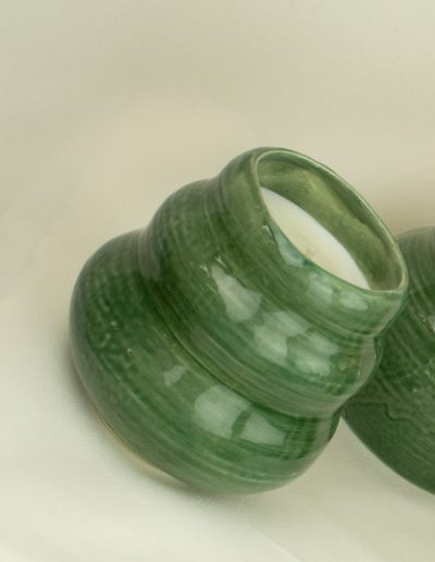 - Jarrón verde de gres relleno de cera de 100% soja